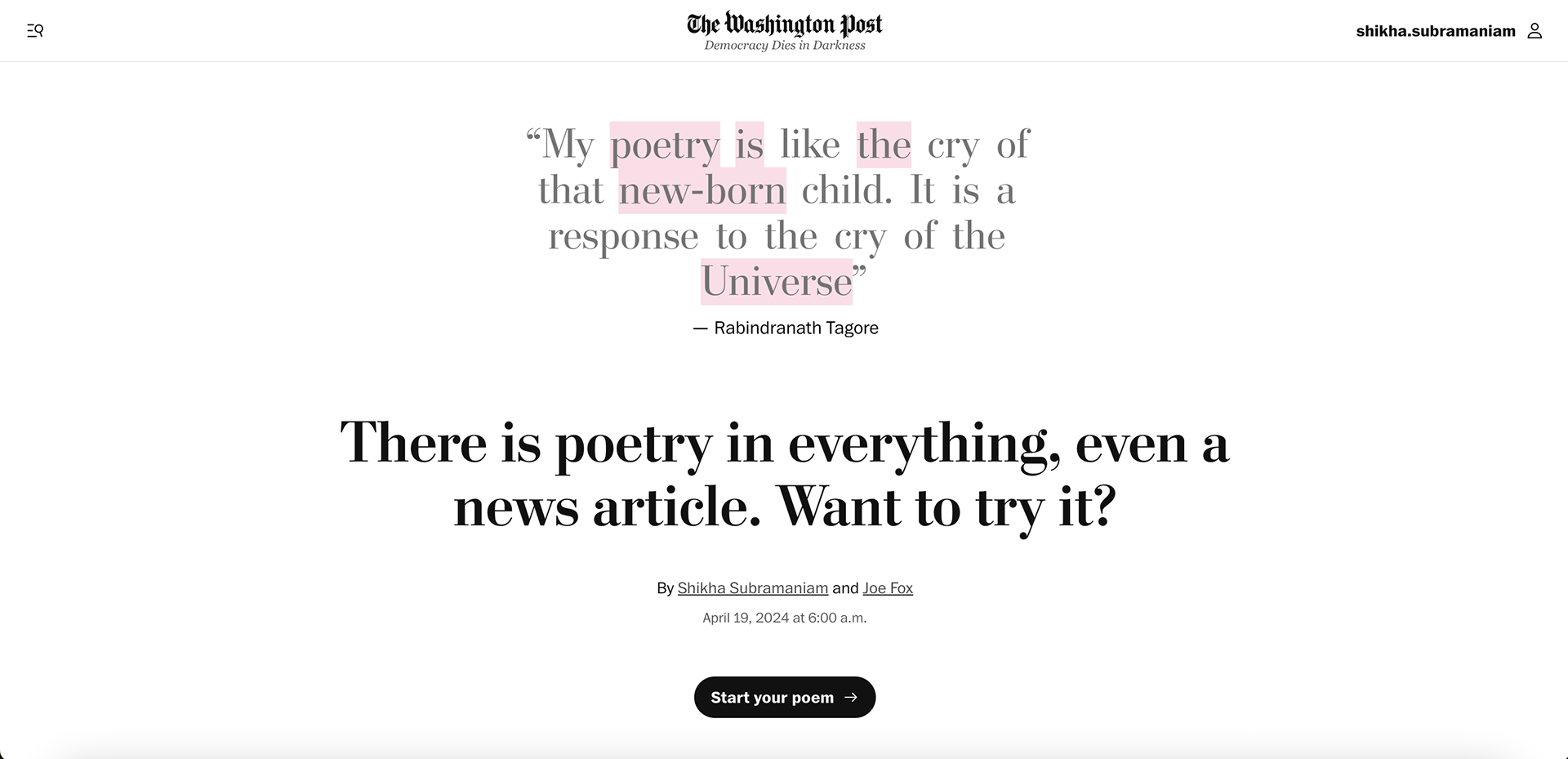 An interactive article that lets you form poems by picking words from existing WP articles, inspired by erasure poetry.